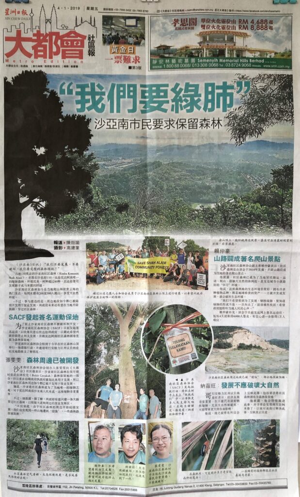 SACF has also initiated an online petition to save this forest and asked help from government to stop developer from destroying the forest. More than 50 volunteers and SACF committee were present in hopes of saving this forest in the Save SACF” campaign today.